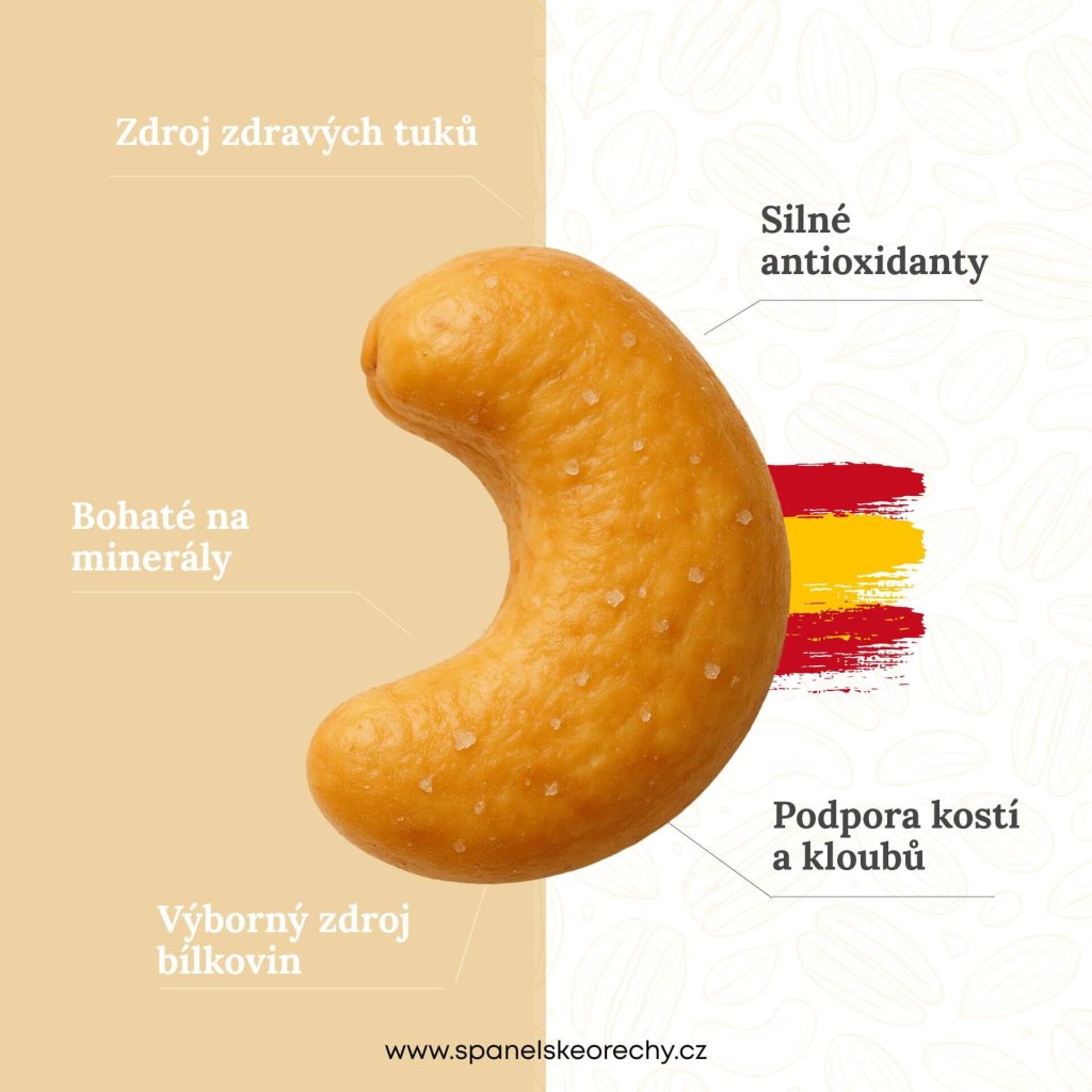 Každá kešu ořech je malým symbolem středomořského životního stylu – svěží, zdravý a plný chuti. Při každém soustu budete cítit dotek slunce a svěžest mořského větru, které jsou vepsány do každého kešu ořechu z Murcie.