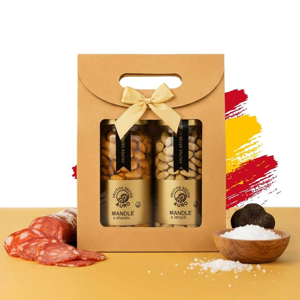 Hledáte drobný dárek, který udělá velkou radost? Zvolte Malou dárkovou tašku a poskládejte si dvě střední balení přesně podle Vaší chuti: od čokoládových mandlí a pekanů v karamelu přes pistácie a kešu až po gurmánské mandle s lanýži, jamónem či chorizem. Vše čerstvě baleno, vloženo do elegantní tašky a připraveno k předání do rukou obdarovaného.