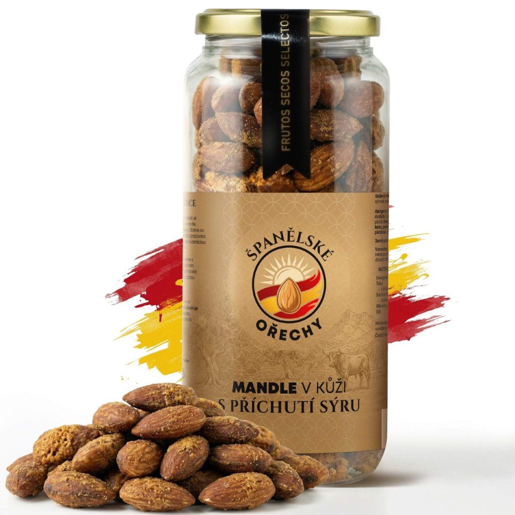 Už vás nebaví brambůrky a obyčejné slané krekry? Naše Pražené mandle v kůži s příchutí sýru (ve velkorysém 400g balení) přinášejí na váš stůl kousek pravé španělské tapas kultury. Na rozdíl od blanšírovaných (loupaných) ořechů jsme u této speciality záměrně ponechali oříškům jejich tenkou hnědou slupku. Tento zdánlivý detail naprosto mění pravidla hry. Slupka totiž během pražení získá úžasnou texturu a udrží na sobě mnohem více chuťové směsi. Výsledek je intenzivní, křupavý a naprosto nezapomenutelný.
